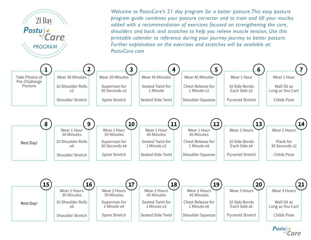 Congratulations you’ve completed our 21-day posture challenge! Connect with us on social media to tell us your progress and results.